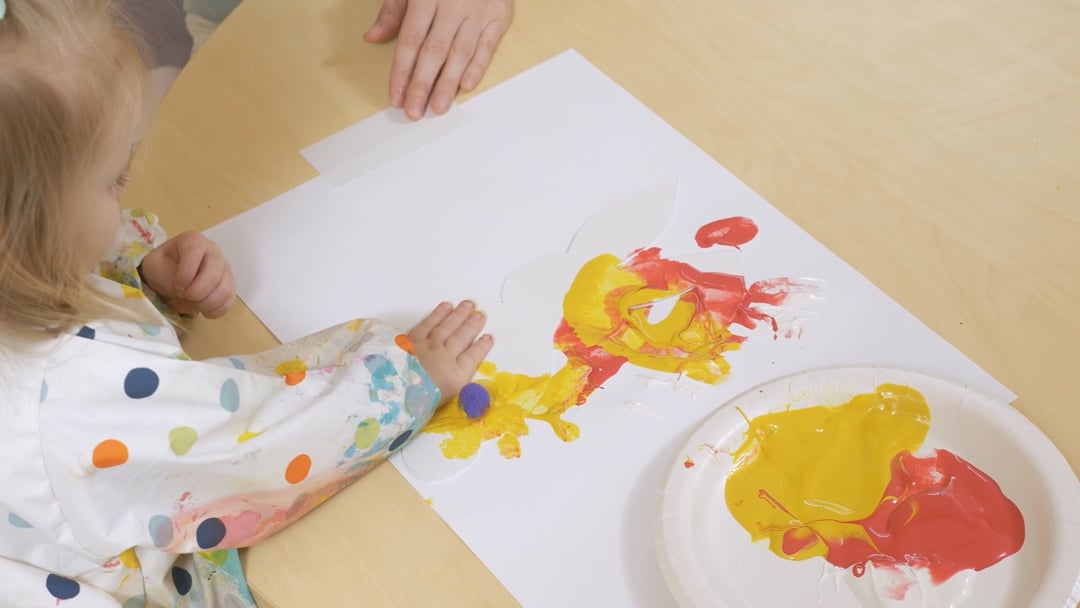valmistage ette jänese kujuga paber, mis on pisut väiksem kui aluspaber. Kinnitage jänes seinanätsuga aluspaberi keskele. Pange paber ja värvidega värvialus lauale valmis. Oluline on, et laps saaks vabalt tegutseda, selleks looge keskkond, mis ei piira last. Katke laud sobiva kattega ning pane lapsele selga riided, mis võivad värviseks saada.
