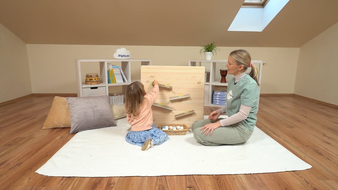 esmalt teipige rennid koostöös lapsega seinale või uksele. Arutage lapsega, mis asendis renn olema peaks, et hiljem sealt midagi alla veereks. Võite teha ka katse nii, et laps juhendab, kuidas rennid panna ja kui esimesed pallid ei hakka veerema (renn on maapinnaga horisontaalne), aidake lapsel mõelda, mida peaks muutma, et pall veerema hakkaks.