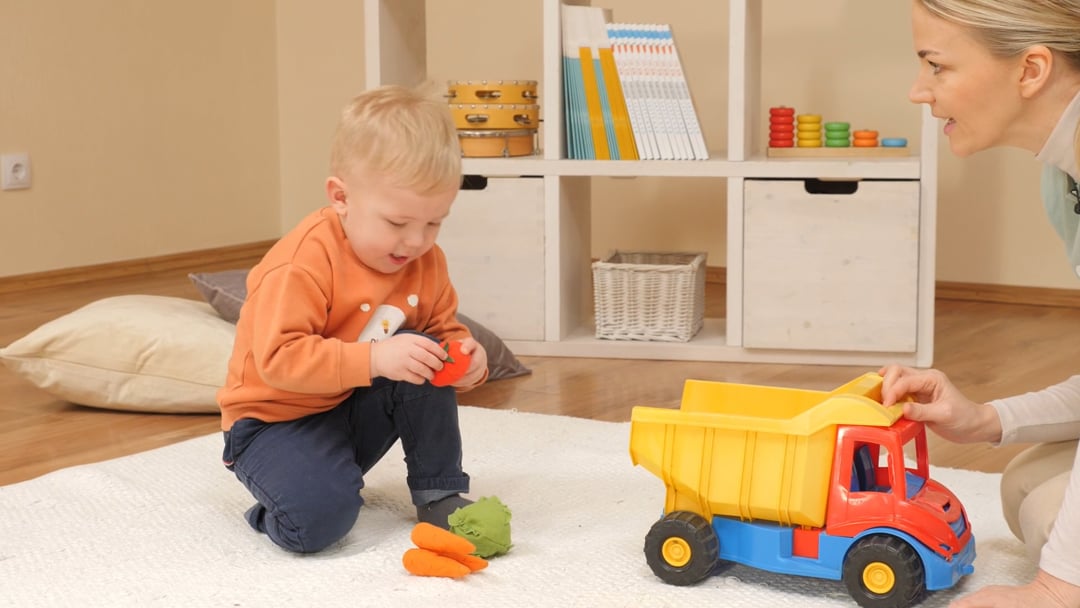 suur kastiga auto on mängus kaubaauto, pange selle kast ühte liiki asju täis ning sõidutage see lapse juurde. Laske lapsel autokastis olevaid asju uurida ja nimetada, küsige lapselt suunavaid küsimusi, näiteks „Mis kaubaga auto praegu meie juurde tuli?“ ja „Mis asjad tal kastis on?“. Proovige suunata last üldnimetusi nimetama (nt riided, toit, raamatud, loomad jne). Esimesel korral võiksite ise öelda: „Vaata, täna sõidab meie juurde toiduauto – see on kaubaauto, mille kärus on toit. Vaatame koos, mis toiduained siin on!“ Järgmisel korral julgustage juba last ütlema, mis kaupa vedava autoga tegemist on.