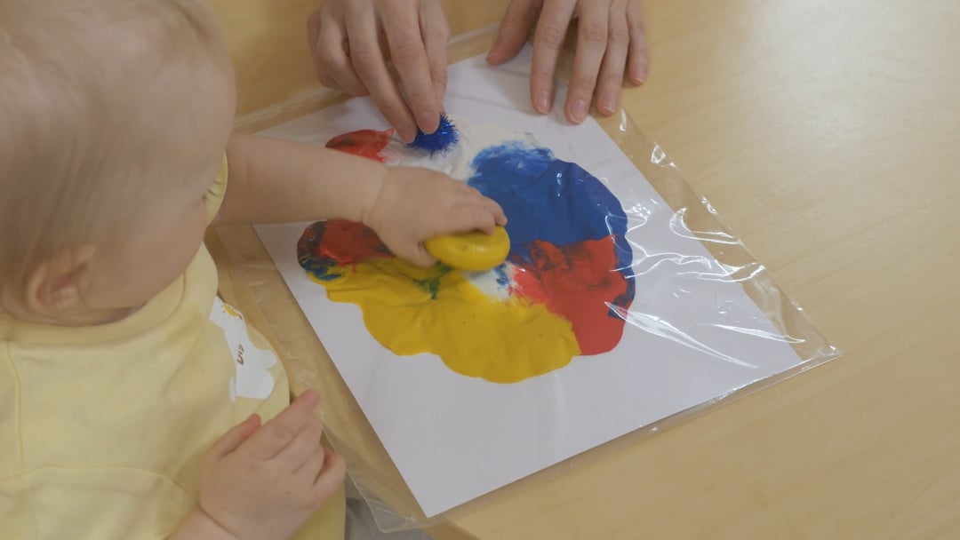 laske lapsel sõrmega värve laiali ajada ja omavahel segada.