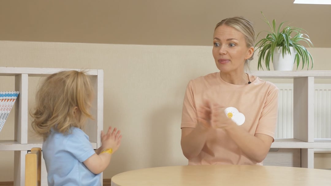 istuge lapsega laua äärde või põrandale ja näidake talle ette, kuidas mäng käib ning innustage teda teie eeskuju järgima.