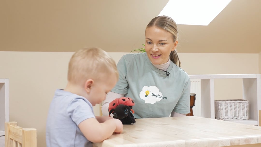 alustuseks pange kätte käpiknukust lepatriinu ja öelge lapsele: „Meile tuli täna külla lepatriinu!“ Seejärel näidake lapsele pilte, justkui lepatriinu näitaks pilte oma sõpradest: mesilasest, teost ja kiilist. Küsige lapselt loomade kohta küsimusi, millele ta saaks vastata omadussõnaga, näiteks „Kas mesilane on suur või väike?“, „Kas tigu on kiire või aeglane?“, „Kas kiili keha on pikk või lühike?“. Esitage küsimus nii, et selles oleks juba kaks omadussõna, mille vahel lapse saab valida – see laiendab lapse sõnavara ning lihtsustab vastamist.