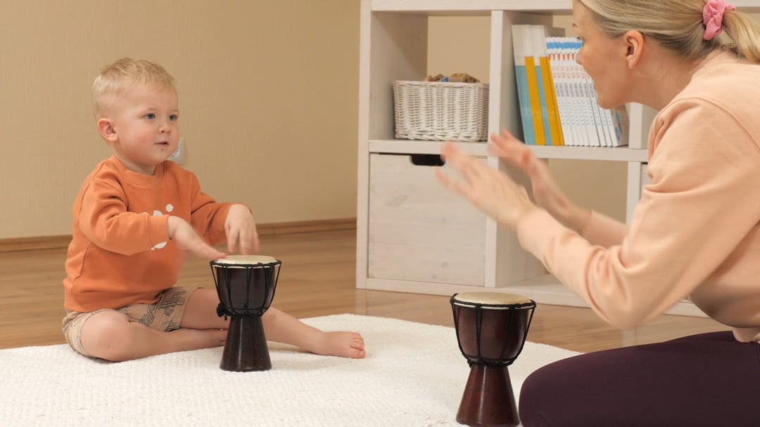 esmalt laske lapsel trummiga tutvuda. Näidake talle, kuidas pulkasid hoida ja kuidas trummi mängida. Seejärel mängige lapsega koos, et ta saaks teie tegevust matkida.