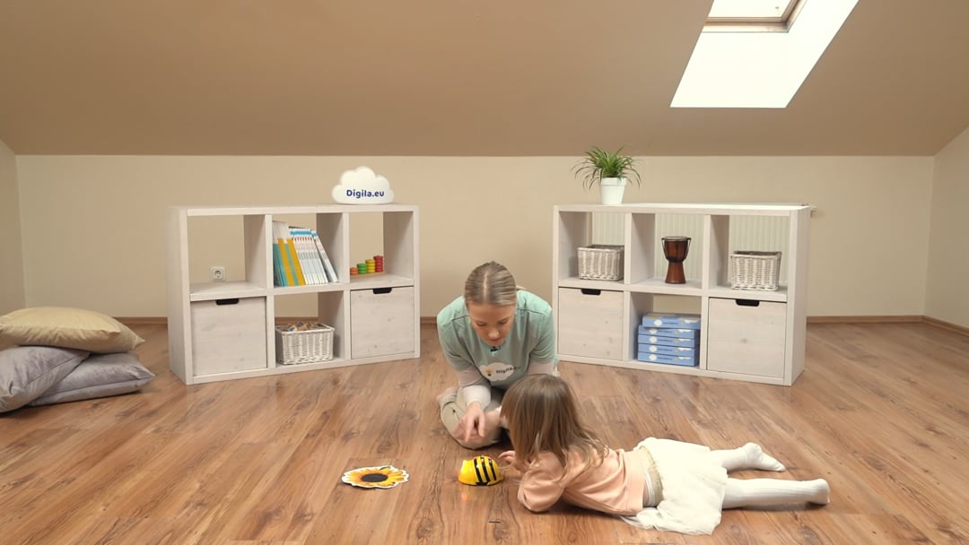 asetage lille pilt veidi robotist eemale selle ette ning näidake lapsele, millist nuppu vajutada, et robot hakkaks lille suunas liikuma. Korrake tegevust kõikide roboti suunanuppudega.