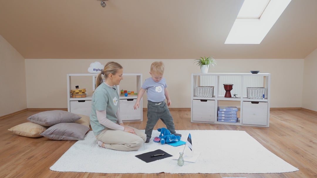 näidake lapsele Eesti lippu või selle pilti ja tutvustage talle lipul olevaid värve. Seejärel andke lapsele värvilised kaardid ja paluge tal leida ümbritsevast ruumist objekte või esemeid, mis oleksid kaardiga sama värvi. Ta võiks leida midagi sinist (näiteks sinise mänguasja), midagi musta (näiteks musta paberi) ja midagi valget (näiteks valge kohvitassi).