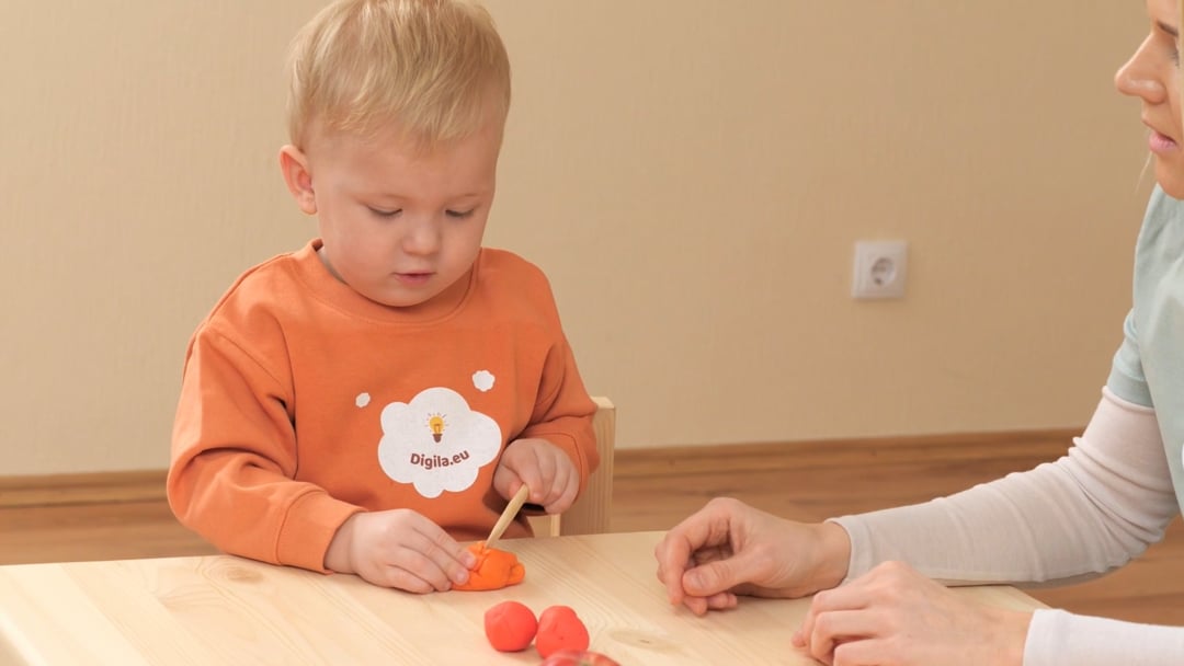 Pärast õuna ja porgandi voolimist tehke lapsele ettepanek proovida, mis maitsega need kaks asja on. Lõigake päris õun ja porgand tükkideks ning paluge lapsel sama teha plastiliinist versioonidega. Laske lapsel porgandit ja õuna süüa ning juhtige samal ajal tema tähelepanu sellele, et plastiliinist voolitud asjad ei kõlba süüa.