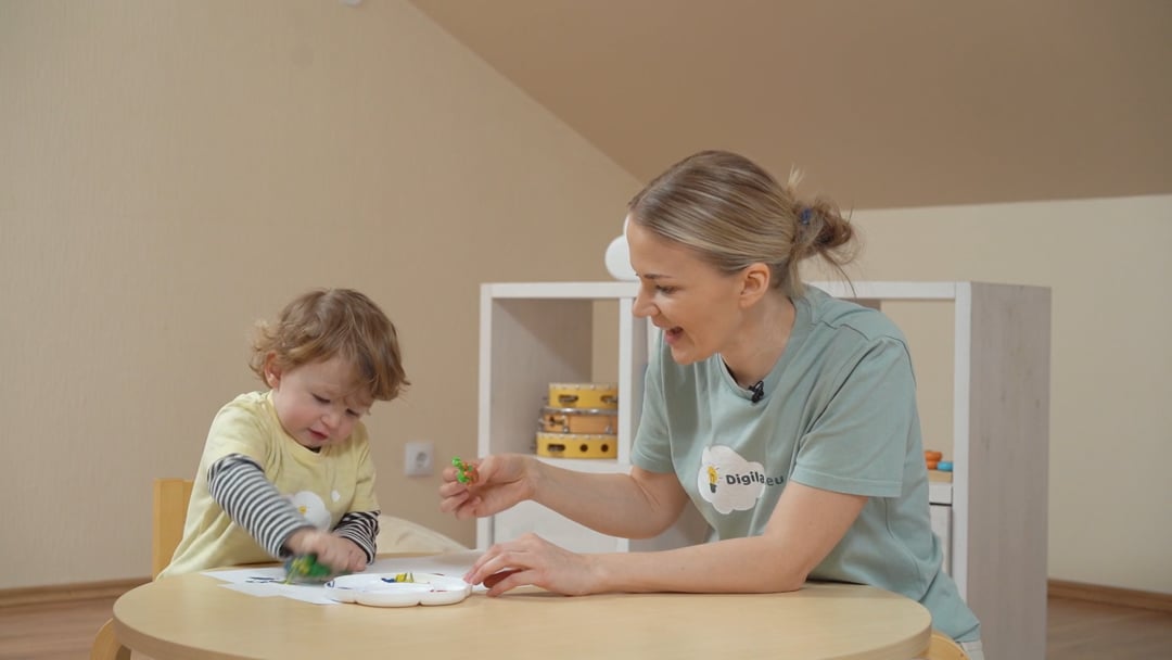 kinnitage teibiga lauale A3-formaadis aluspaber, pange valmis värvialus värvidega ja erineva suurusega õhukese paberi tükid. Kasutage pigem õhukest koopiapaberit, kui salvrätikut, kuna viimane on trükkimise jaoks liiga pehme. Lõigake koopiapaber erineva suurusega tükkideks (nt üks A4 paber kaheks ja teine neljaks), siis saate trükkimisel lapsega jälgida, kuidas paberi suurus trükkimise tulemust mõjutab. Arvestage, et ümbrus võib saada värviseks ja soovi korral katke laud sobiva kattega.