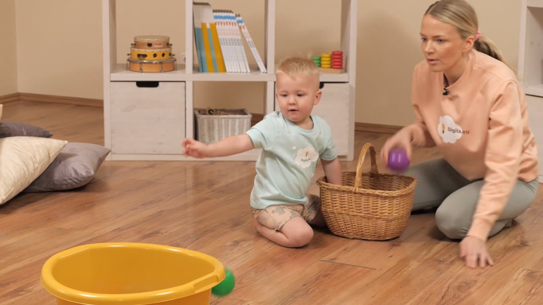 tegevuse käigus liigub laps veereva palli järel ja see arendab tema visuaalset taju, kiirust ja ruumilist mõtlemist ning toetab kokkulepete järgmise oskuse arengut. Saate mängu huvitavamaks muuta erinevate detailide lisamisega, näiteks määrata palli viskamise ajaks 30 sekundit, kasutada suuremaid palle või liikuda kastis/korvist kaugemale.