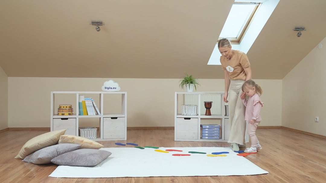selgitage lapsele, et hakkate aaret otsima, aga peate kõndima ainult mööda jälgede rada. Kui jalajäljed otsa saavad laske lapsel aare (marjakauss) üles otsida. Võite rada korduvalt ümber kujundada ning mängida, kuni lapsel huvi on.