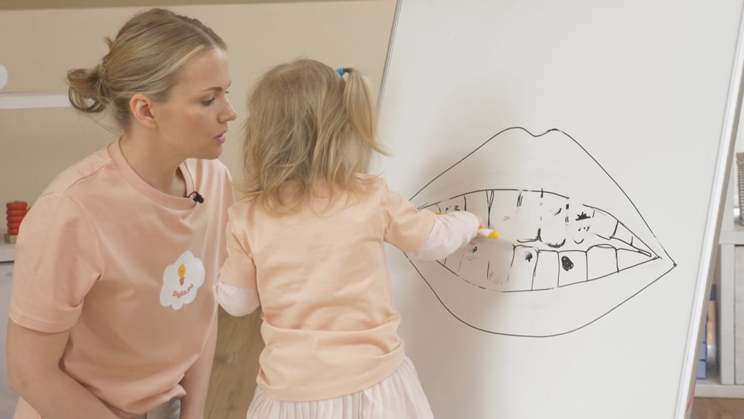 valge tahvli asemel võite kasutada ka prinditud ja kiletatud suu ja hammaste pilti, millele saate vildikaga plekid peale joonistada.