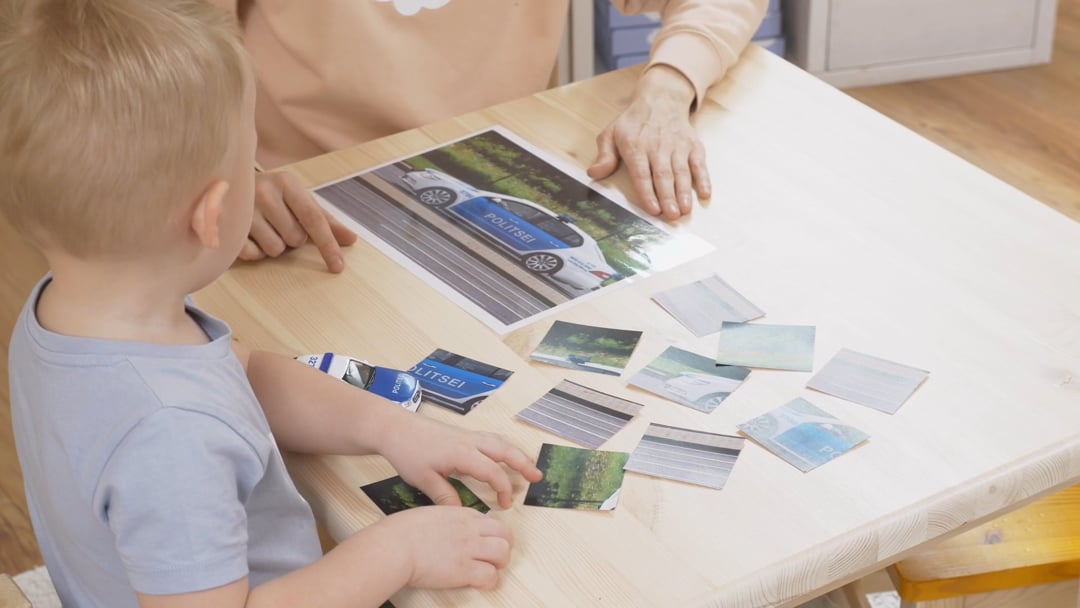 laske lapsel politsei-, kiirabi- ja tuletõrjeauto pildid tükkidest kokku panna. Võite alguses lapsele ette näidata, kuidas seda teha, aga võite lasta lapsel proovida ka iseseisvalt ülesannet lahendada. Laske lapsel tükkidega nii kaua mängida, kuni ta asjast aru hakkab saama ja tervikpildi moodustamisega ise ilusasti hakkama saab.