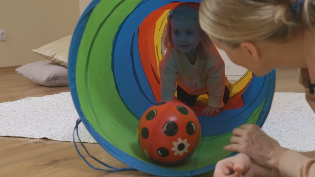 tegevuse võib muuta põnevamaks, veeretades palle läbi tunneli – seda nippi saab kasutada ka siis, kui lapse ei julge tunnelist veel läbi pugeda.