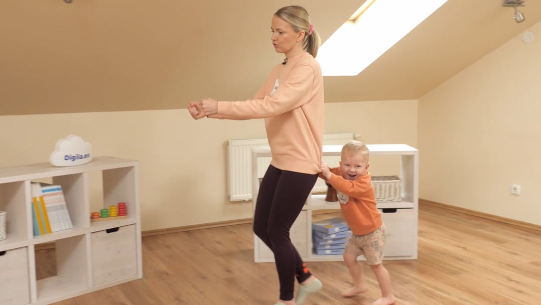Laps sooritab ettenäitamise ja juhendamise abil erinevaid lihtsamaid asendeid ja liikumisi
