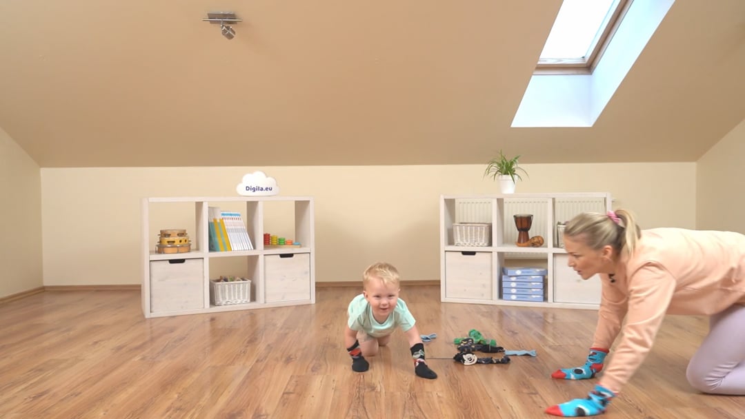 valmistage ette mööblist vaba ruum, kus laps saab end põrandal libistada. Laotage põrandale sokid.