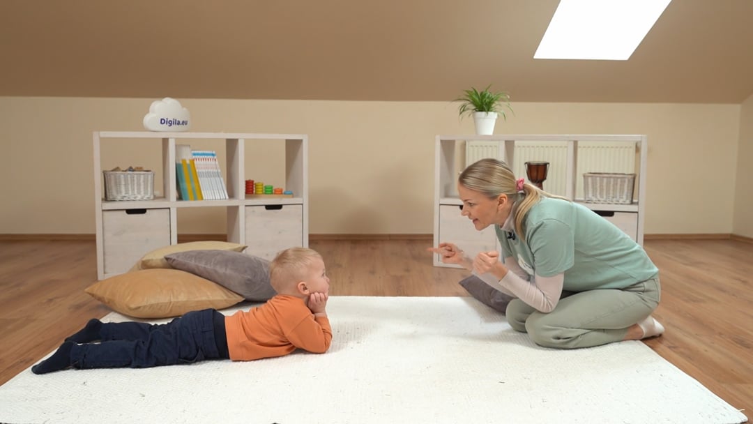istuge lapsega maha ja korrake esmalt üle kehaosade nimetused. Oluline on, et lapsel oleks võimalik puudutada nimetatavat kehaosa. Tuletage meelde kõik kehaosad – jalad, käed, selg, kõht, pea, kael, nina, suu, silmad jne. Seejärel leppige lapsega kokku, et ta kordab teie järel kõikide kehaosade nimetusi sama hääletugevusega, millega teie neid ütlete. Kui te sosistate, peab ka laps sosistama, kui te ütlete kehaosa nimetuse kõva häälega, siis peab laps sama tegema.
