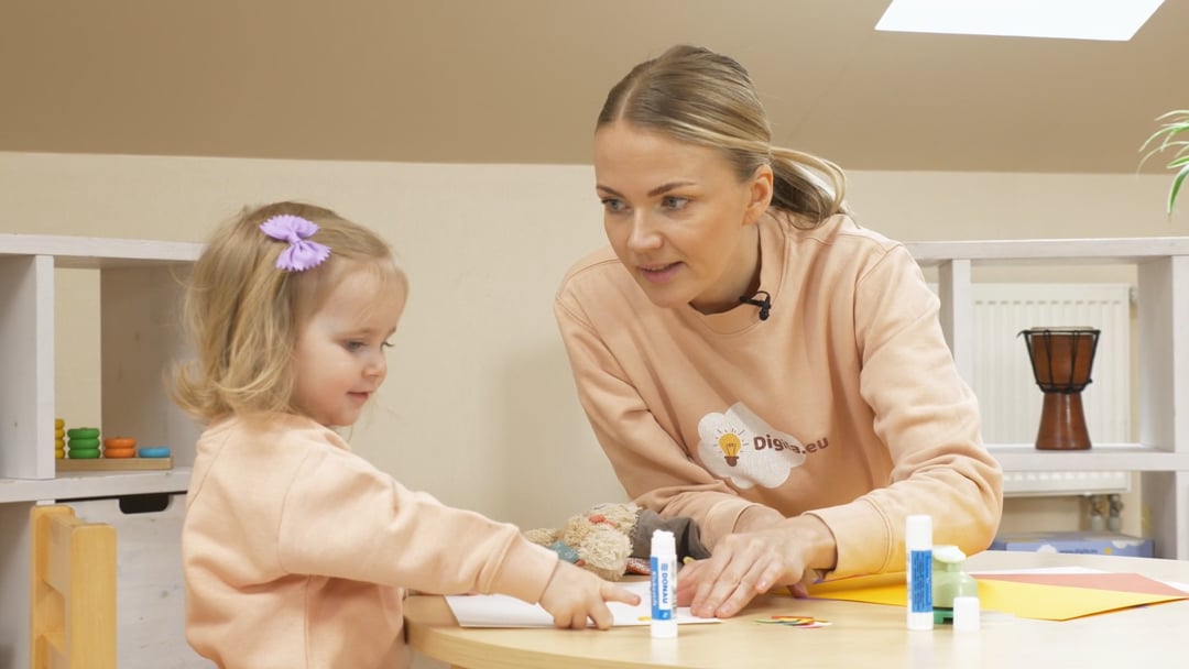 alustuseks selgitage lapsele, kuidas liimipulka kasutada. Seejärel alustage motiivide kleepimist aluspaberile. Oluline on, et pööraksid lapse tähelepanu sellele, kuidas liimipulka juurde keerata ja et pärast tegevuse lõpetamist tuleb sellele kork peale panna.
