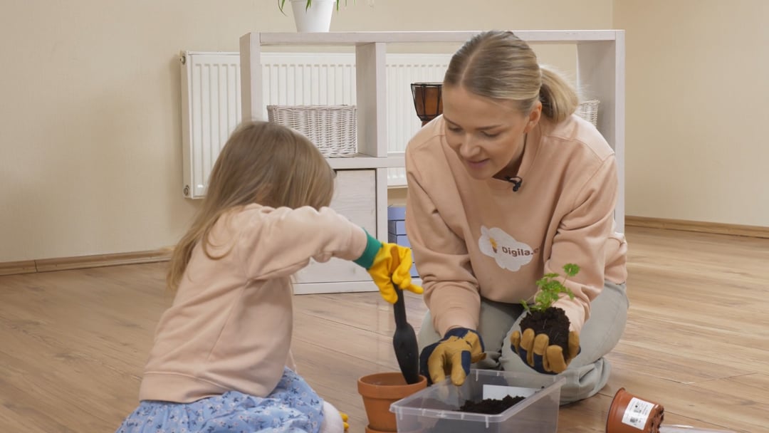 kaasake laps taime istutamisse. Pange potti mulda, lisage vett. Tõstke taim ettevaatlikult potti ja lisage veel mulda. Võite lapsele rääkida, kuidas valida õige suurusega pott või et lilledele meeldivad erinevad mullad ja kasvamiskohad – mõnele meeldib soe ja päike, mõnele taimele just niiskem ja varjulisem koht. Hoolitsege ka edaspidi taime eest koos.