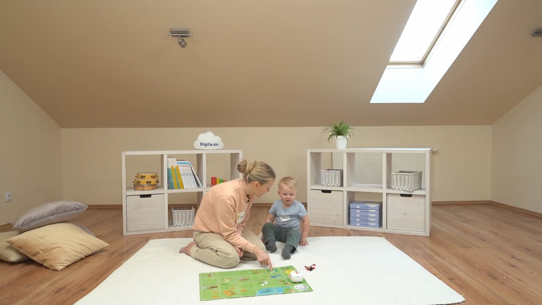 asetage maha loomaaia alusmatt. Lülitage koos lapsega robot sisse ja asetage see alustuskohale (mati vasakul küljel olevale mullile). Kui kasutate seda robotit lapsega esimest korda, siis on soovituslik alustada juhendamise (instructions) tasemelt, siis sõidab robot ise, ilma programmeerimata, ning jutustab loo „Milliseid loomi seal on?“. Edasi saab liikuda kodeerimise (code) tasemele, kus robot jutustab sama loo (tähendab ka sama trajektoori matil), aga nüüd tuleb robotit ise nuppudest juhtida. Sisestage lapsega koos robotile vajalikud sammud, et liikuda ühe looma juurest teise juurde. Samal ajal, kui robot liigub, saate lapsega rääkida loomadest, et mis häält nad teevad ja kus nad muidu elavad.