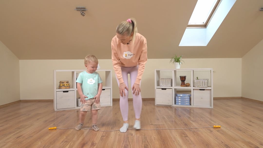 asetage põrandale sirge nöör, mis on piisavalt pikk, et laps saaks sellel vabalt kõndida ja harjutada tasakaalu hoidmist.