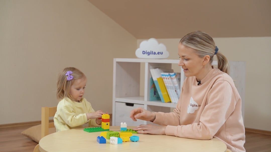 pange valmis legoklotsid (Lego Duplo). Neid võiks olla 10 erisugust ja igat sorti 2 tk (ehk kokku 20), et laps saaks ehitada täpselt samasuguse torni nagu teie.