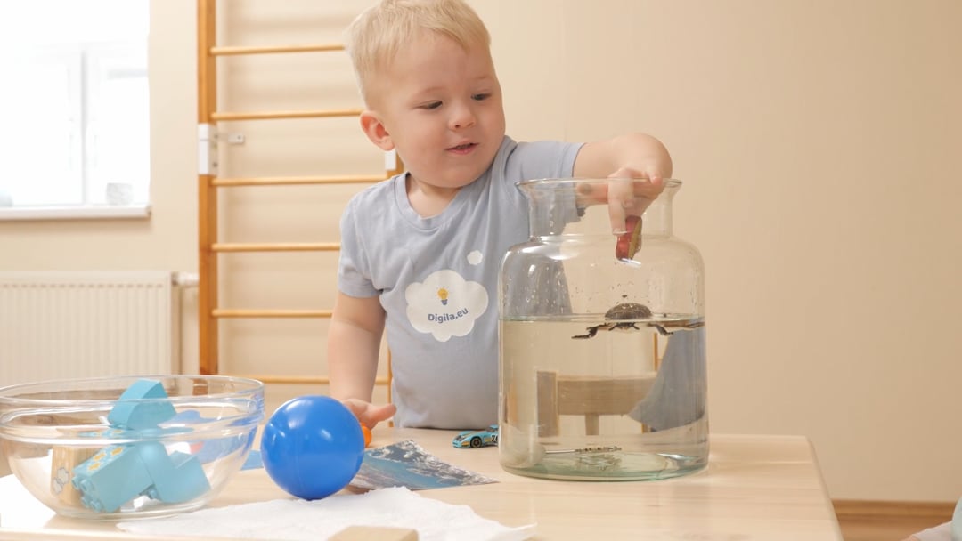 pange lauale veekauss ja erinevad vahendid, millega hakatakse katset tegema. Lisaks pange valmis kaks silti, millele laps saab ennustades osutada. Sildid peaksid olema pildi kujul ja üks pilt vastama mõistele „ujub“ ja teine mõistele „upub“.